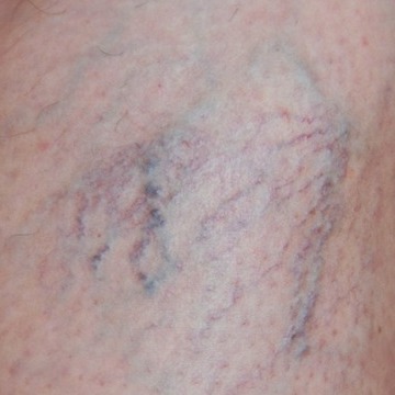 Die zweite Form von Besenreiser hat baumartige Strukturen, die aus einer tiefen Nährvene hervorgehen und von ihr gespeist werden. Blasst der Baum ab, wenn man dort die Kochsalzlösung hinein spritz,